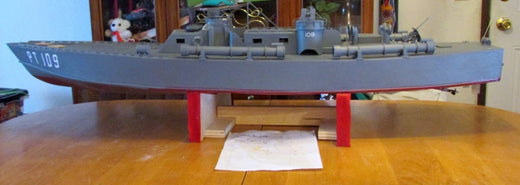 One or our customers, Chet, sent us these pictures of his PT109 project. Here is a few things he said about his great looking RC boat- The hull, deck and cabin is made from 3/16" balsawood. The hull was fiberglassed with your fabric and a resin I had on hand....